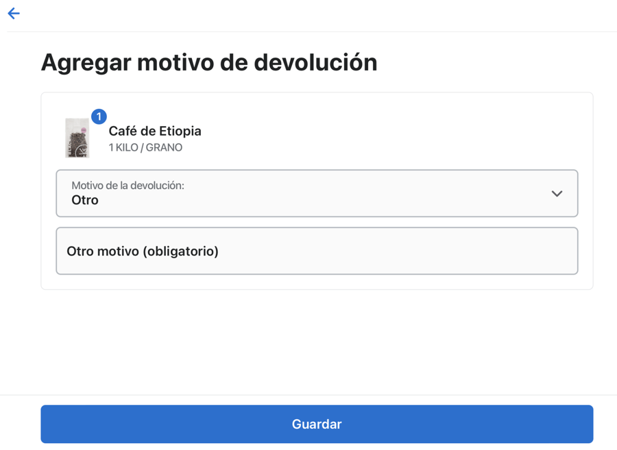 Elegimos el motivo y, si corresponde, agregamos una nota antes de guardar.