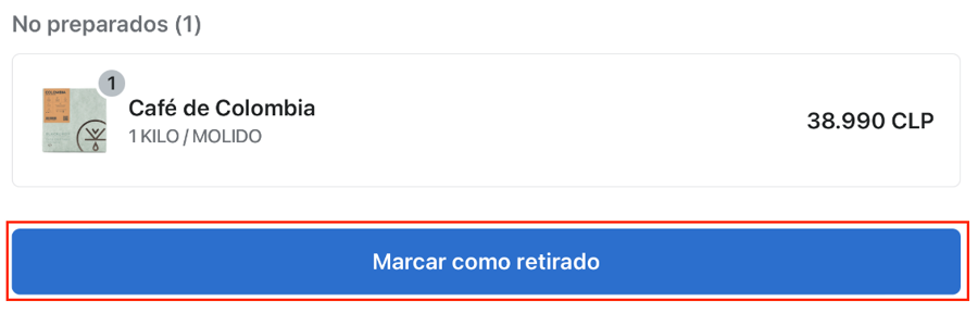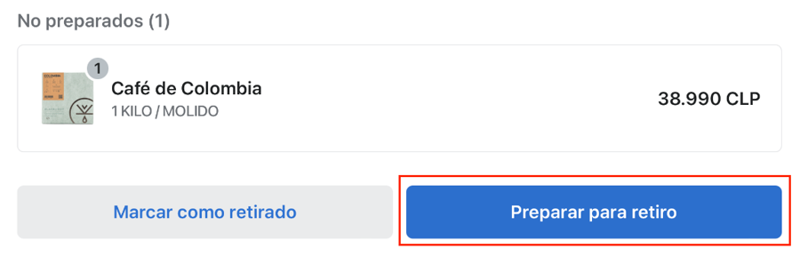 Una vez el pedido armado apretamos en el botón "Preparar para retiro".