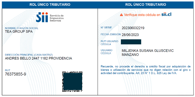 Verificamos el e-rut en la pagina oficial de SII.
