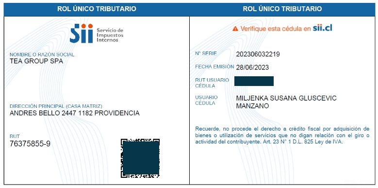 Cliente debe mostrar documento de SII (e-Rut) a su nombre para hacer una compra en nombre de la empresa, este puede ser fisico o digital. De lo contrario no podemos ofrecer factura.